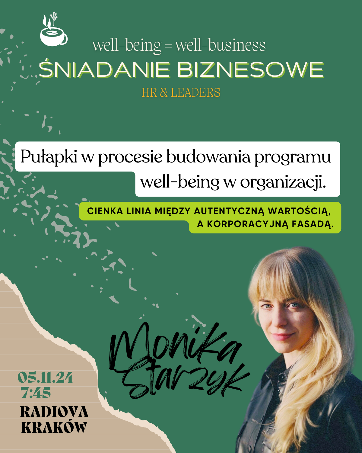 oraz wszystkich, którym bliska jest idea świadomego i odpowiedzialnego budowania dobrostanu w miejscu pracy.
