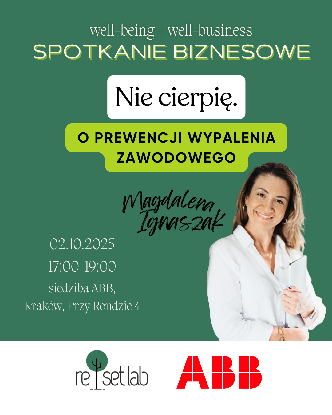 reset lab jest organizatorem Spotkań Biznesowych „well-being = well-business”, które łączą świat biznesu z ideą holistycznego dobrostanu. Na każde spotkanie zapraszamy wybitnych specjalistów i specjalistki, którzy dzielą się swoją wiedzą oraz praktycznymi doświadczeniami z zakresu well-beingu, przywództwa i kultury organizacyjnej.
