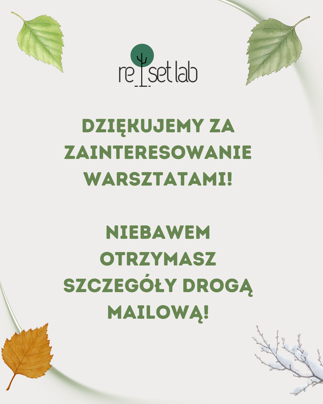 Zima to czas uśpienia, odpoczynku i odbudowy zasobów. Choć świat zewnętrzny często popycha nas ku nowym planom, natura przypomina o wartości zatrzymania. Podczas zimowego spotkania uczestnicy doświadczają kąpieli leśnej w zimowej scenerii oraz hipnozy z wizualizacją bezpiecznego domu, w którym symbolicznie porządkują przestrzeń wewnętrzną i puszczają to, co już nie służy.